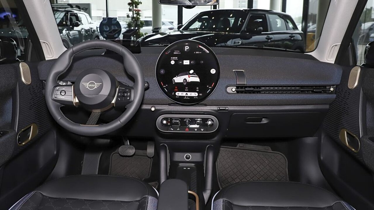 در داخل، مینی کوپر برقی با یک صفحهنمایش ۹.۵ اینچی دایرهای شکل OLED، از ظاهر اصیل این برند پیروی میکند. این نمایشگر روی سیستمعامل Mini OS ۹ اجرا میشود. یک نمایشگر هدآپ پشت فرمان سه پره قرار میگیرد.